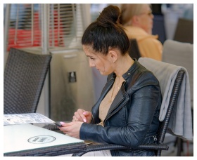 Woman Sitting Terrace Restaurant