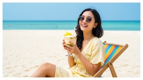 Woman Beach Sunglasses Drink