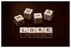 Wooden block letters spelling 'love' on a textured