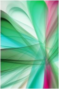 Vibrant abstract image with green and pink hues, creating a dynamic flow of light and shadow.