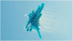 Flowing glass-like molecular structure in blue. Co