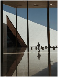 Silhouette of a person walking in a modern archite