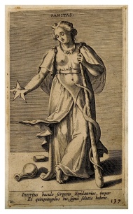 Hygieia, goddess health, holding pentacle