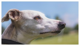 A Weimaraner dog relaxing on a rug in a cozy livin