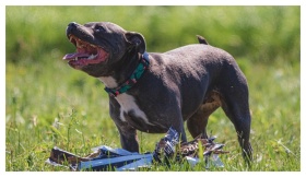 A Weimaraner dog relaxing on a rug in a cozy livin