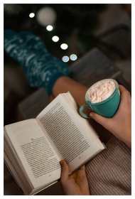A calming indoor scene with a book and coffee on t