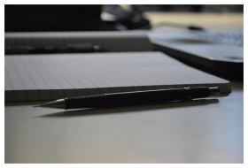 Minimalistic workspace setup with a notebook, penc