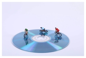 Disc cyclists, miniature sport advertising