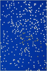 Golden star confetti scattered on a deep blue surface, creating a festive and whimsical pattern.
