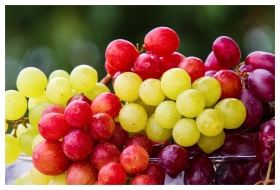 Colorful grapes on a wooden board, perfect for fre