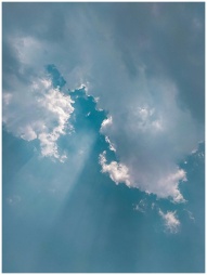 Stunning cumulus clouds in a vibrant blue sky with sunrays streaming through for a serene atmosphere.