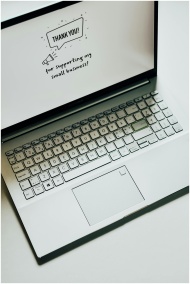 This close-up image shows a laptop displaying a thank you message for supporting small businesses.