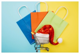 A minimalist image of a mini shopping cart filled