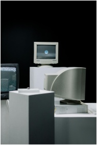 Vintage computer monitors arranged in a minimalist
