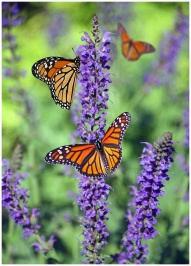 Monarch butterflies perched on purple lavender blo