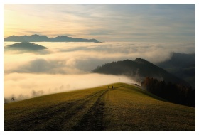 Mountains Fog Sky Clouds