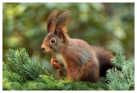 Close-up of a curious European red squirrel standi