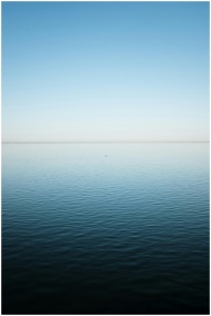 A serene view of a calm blue ocean under a clear sky, perfect for relaxation.