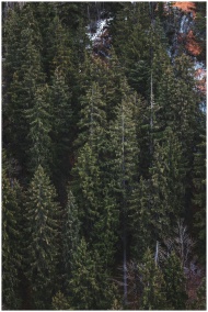 Aerial view of dense evergreen forest in Germany,