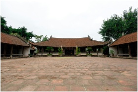 Explore the serene beauty of a traditional Vietnamese temple courtyard in Hà Nội, captured on a clear day.