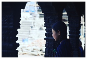 A teenage girl in colorful traditional attire sitt