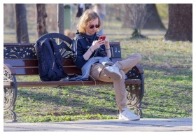 Man Bench Outdoors Phone
