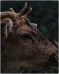 Detailed close-up of a wild deer's head, highlight