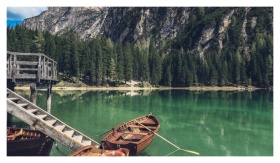 A serene scene of wooden boats at the shore during