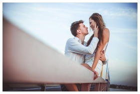 A couple shares a romantic kiss illuminated by tor