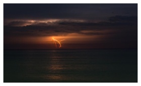 A colorful sunset over a calm ocean, perfect for v