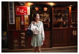 A teenage girl in colorful traditional attire sitt