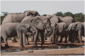 A herd of African elephants at a waterhole in Nami