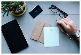 Black and white photo of a person shopping online