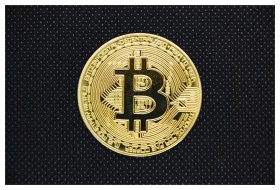 Two hands exchanging a Bitcoin coin, symbolizing c