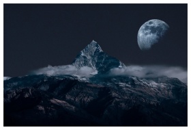 Mountain Night View Crescent Moon Landscape