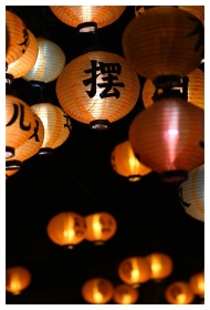 Warmly lit traditional lantern with Asian characte
