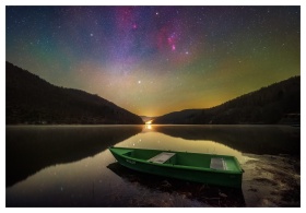 A serene scene of a lone boat navigating the pictu