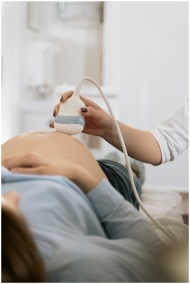 A pregnant woman undergoing a medical ultrasound i