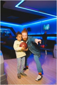 Father and son enjoying a day at the bowling alley, capturing fun and family bonding moments.