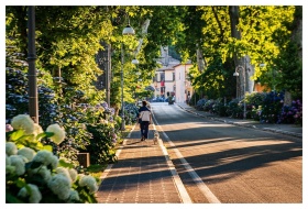 Street Man Dog Beautiful Flowers