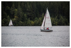 A majestic scene of a sailboat on a calm lake with