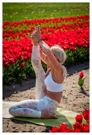 Woman Yoga Balance Red Tulips