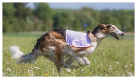 A Weimaraner dog relaxing on a rug in a cozy livin