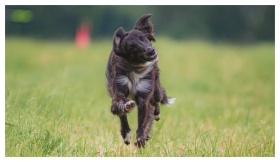 A Weimaraner dog relaxing on a rug in a cozy livin