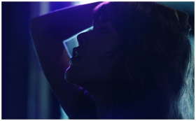 Silhouetted woman with dramatic lighting creates a moody nighttime portrait.