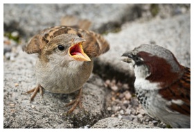 Sparrows Young Feeding Nature