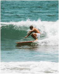 Man surfing on ocean wave, showcasing thrilling wa