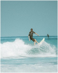 Surfer riding a wave on a sunny day at the beach in Honolulu, Hawaii.