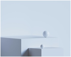 Elegant minimalist scene with white geometric shapes on a light blue backdrop.