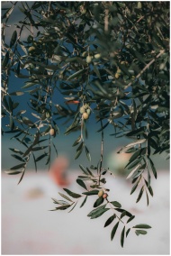 A vibrant olive tree branch with green olives in n